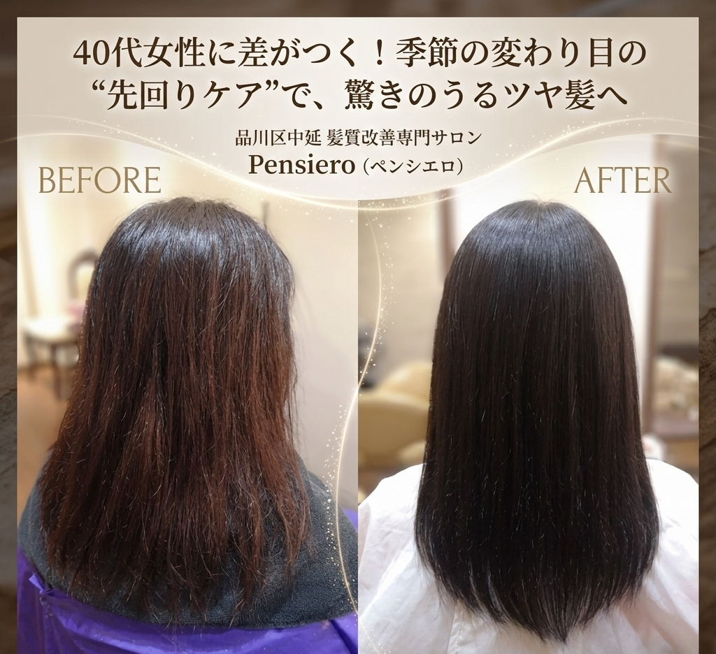 【保存版】品川区中延で叶える「40代からのうるツヤ髪」|季節の変わり目に老け見えしないための“先回りケア”とは?/品川区中延髪質復元×ハーブマジック美容室Pensiero【ペンシエロ】